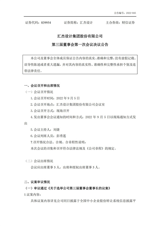 第三屆董事會第一次會議決議公告