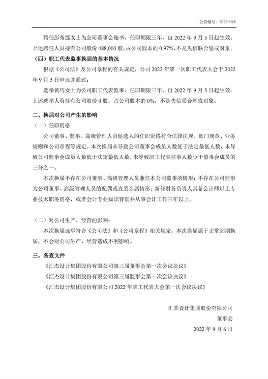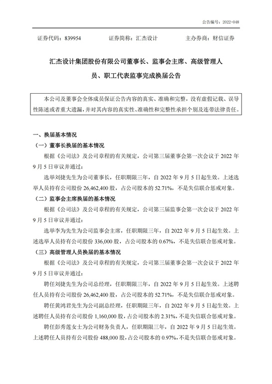 董事長(zhǎng)、監(jiān)事會(huì)主席、高級(jí)管理人員、職工代表監(jiān)事完成換屆公告