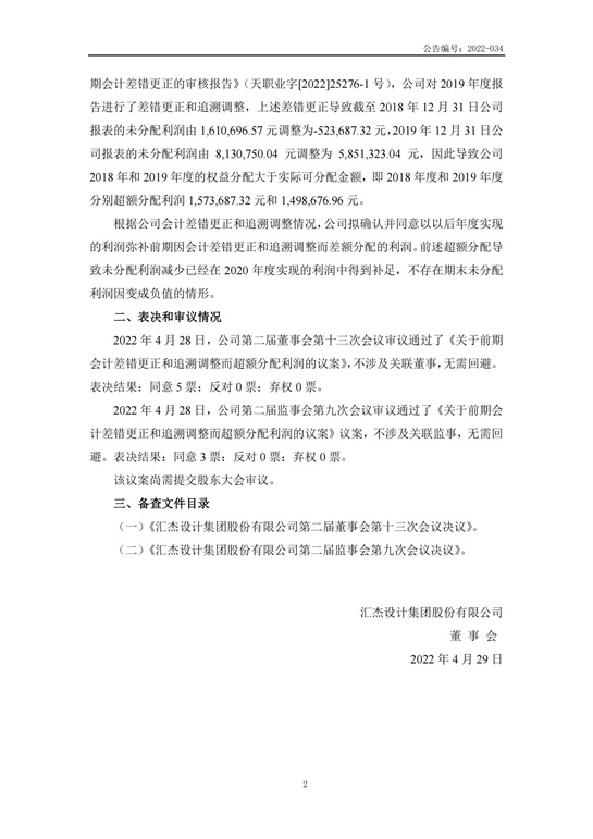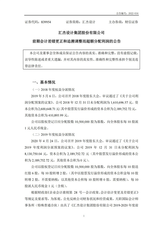 關(guān)于前期會(huì)計(jì)差錯(cuò)更正和追溯調(diào)整而超額分配利潤的公告